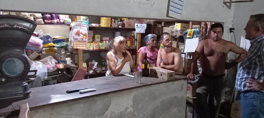 Por las noches, cuando el sol se esconde tras las copas de los espinillos y el aire empieza a refrescar, la magia del boliche se enciende en su máxima expresión. Sillas de madera y reposeras se acomodan en la vereda de tierra, bajo la luz amarillenta de un foco, y allí se arma la rueda. Entre tragos de vino o cerveza, los vecinos conversan de lo cotidiano: la sequía que aprieta, la lluvia excesiva, el precio del ganado, algún recuerdo de juventud. La copa fría se convierte en bálsamo contra el calor y, al mismo tiempo, en puente de amistad.